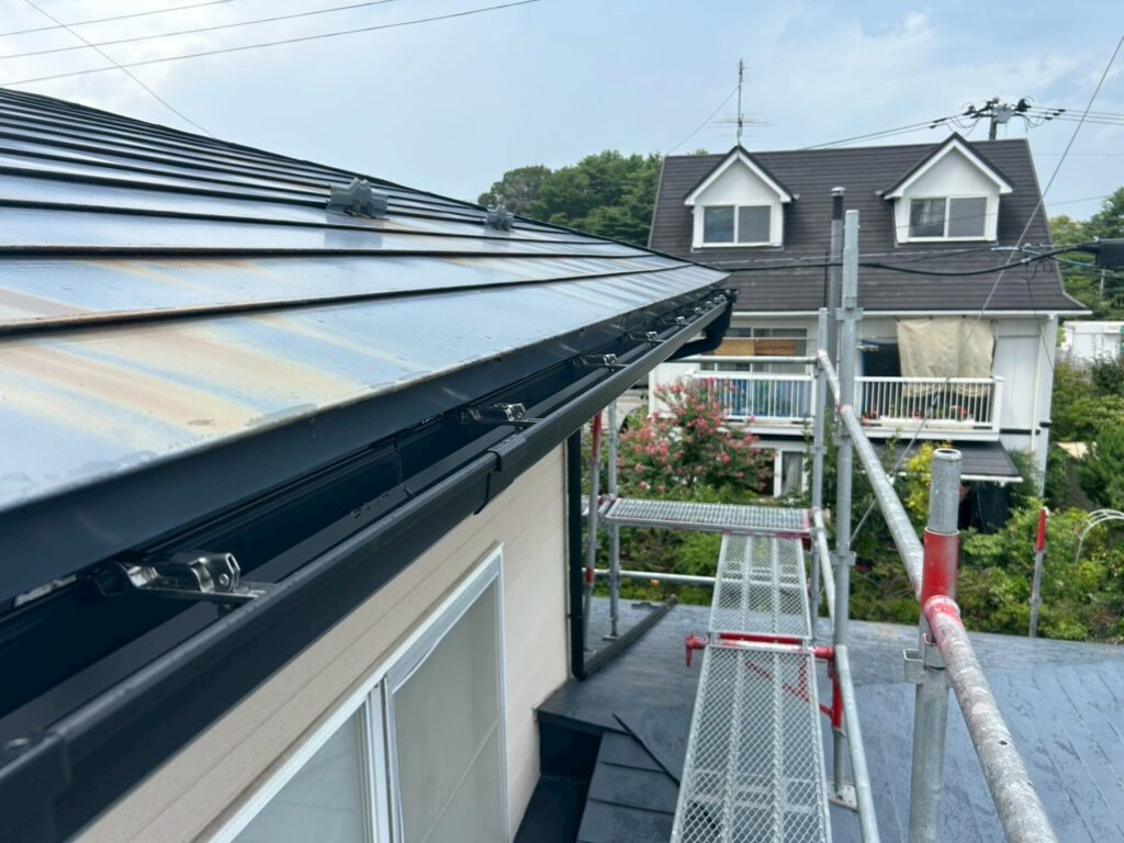 | 既存撤去 | 劣化した軒樋・縦樋・集水器・金具を撤去 |