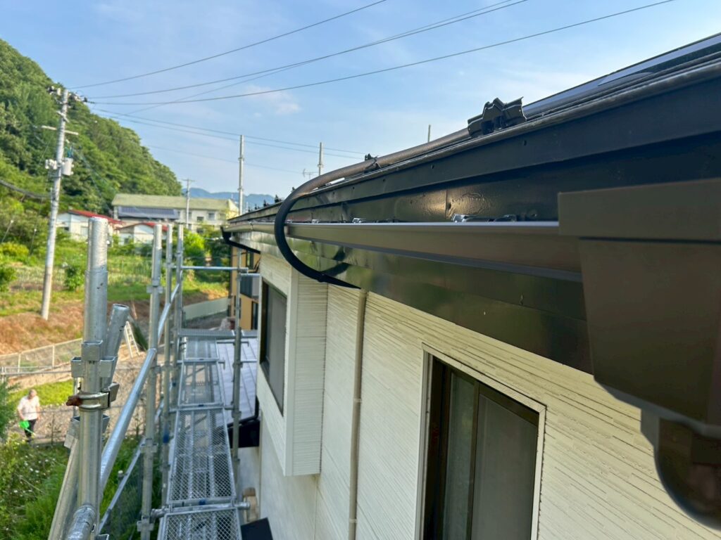 そんなH様のお悩みを解消するため、鉄製雨樋から塩ビ製雨樋への全面交換工事を実施しました。