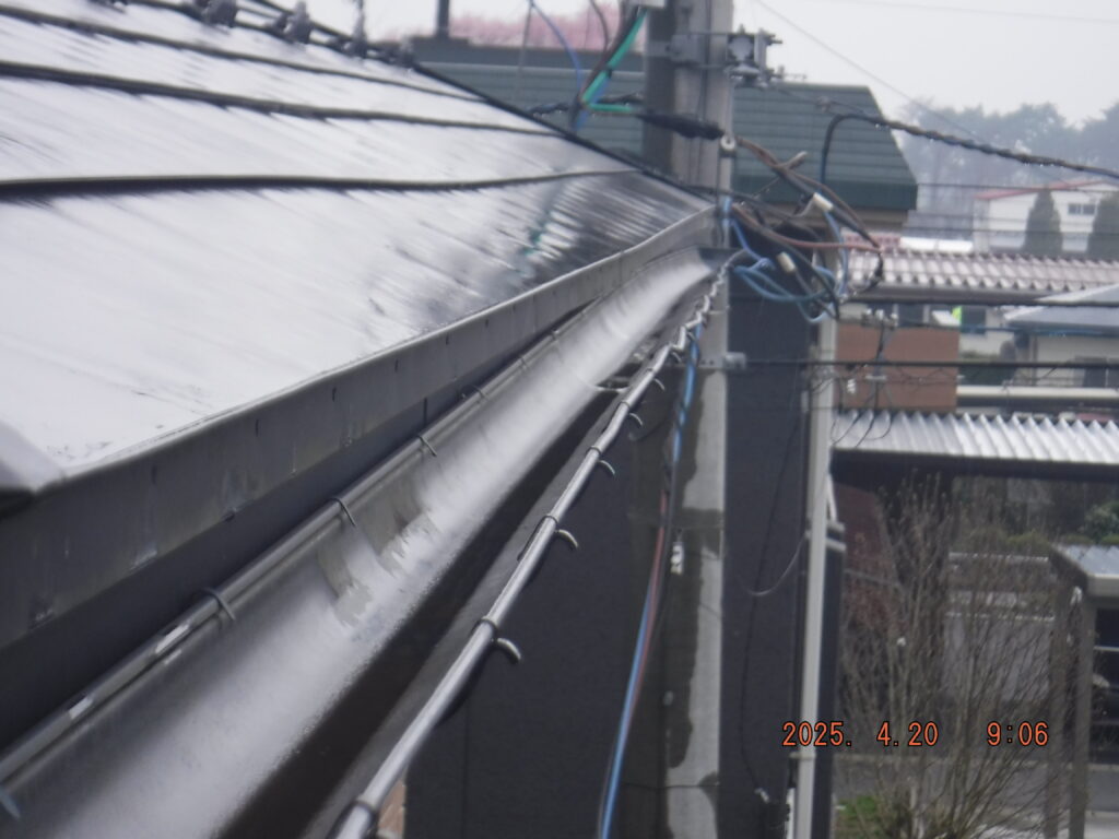 ⑤ 継ぎ目からの漏水 軒天被害の真上にある雨樋の継ぎ目から、長年水が漏れ続けていました。これが軒天被害の根本原因でした。
