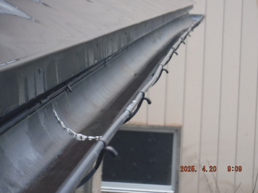 ⑦ 軒樋の大きなたわみ 積雪荷重と経年劣化で、軒樋が大きくたわんでいました。