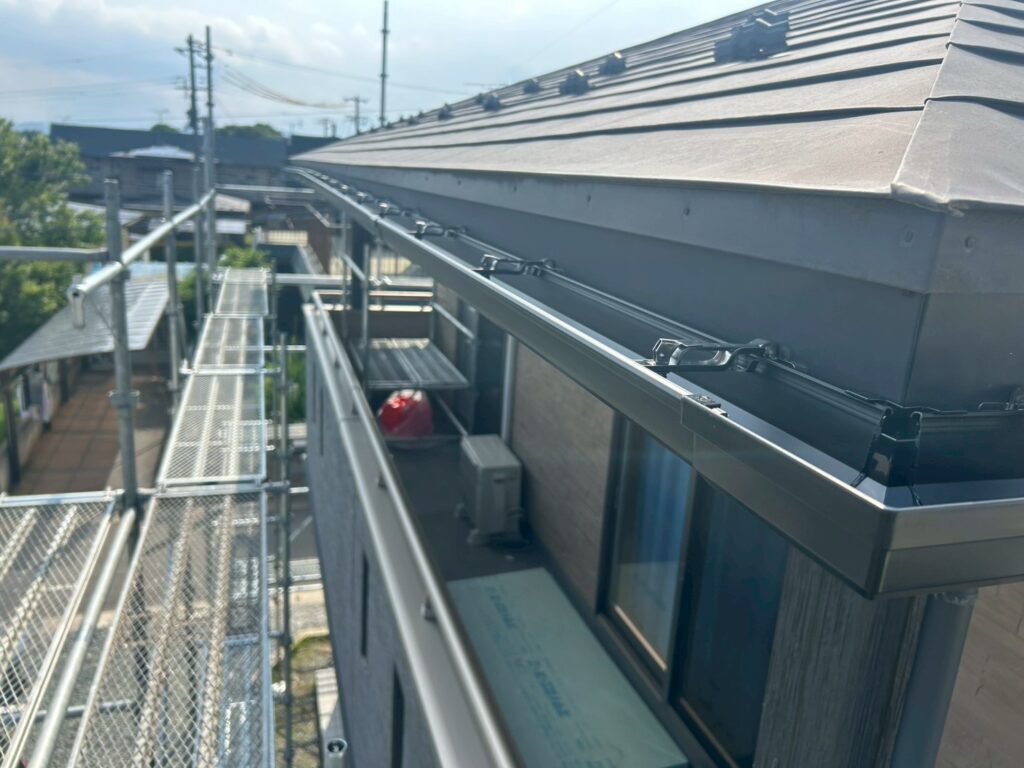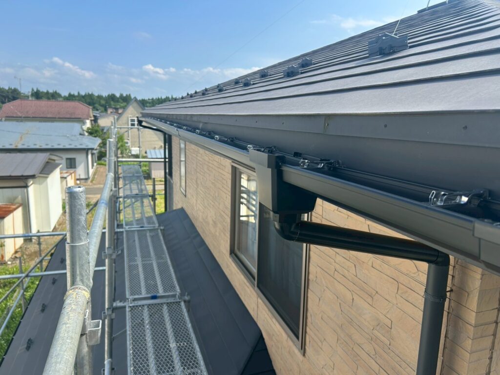 T様邸では、軒天補修だけでなく雨樋交換もセットで実施しました。