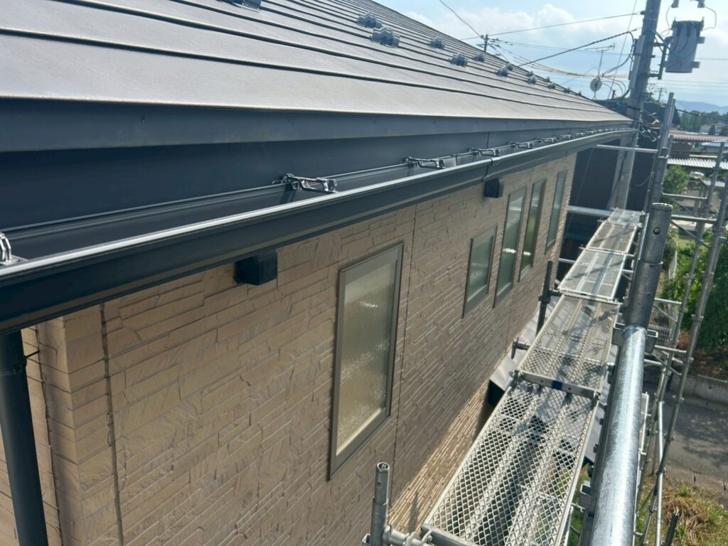 T様邸では、雨樋の全面交換と軒天の補修塗装をセットで実施しました。