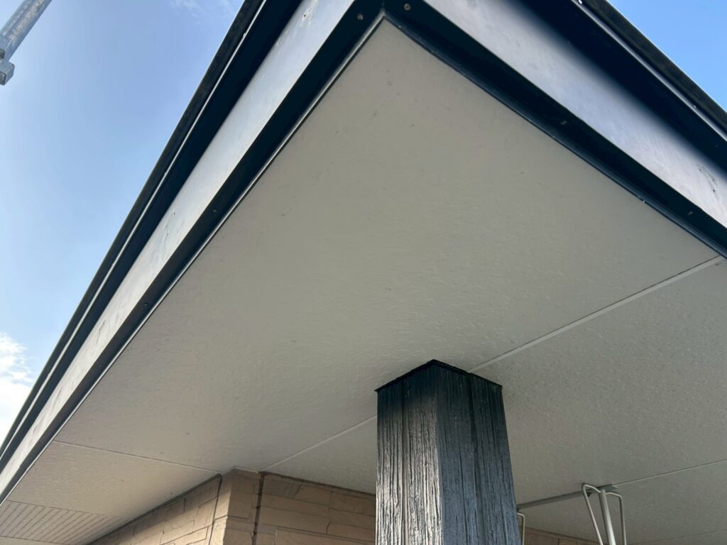 施工のポイント: 雨樋の漏水が原因だったため、まず雨樋を交換してから軒天を補修。順序を逆にすると、雨樋を外すときに塗りたての軒天を傷つける可能性があるためです。