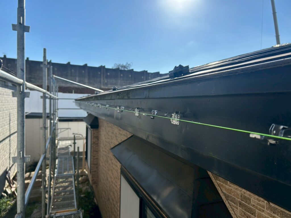 施工のポイント: 金具の間隔を通常の60cmから45cmに詰めて設置。1箇所あたりの負担を軽減し、積雪荷重に強い仕様にしました。