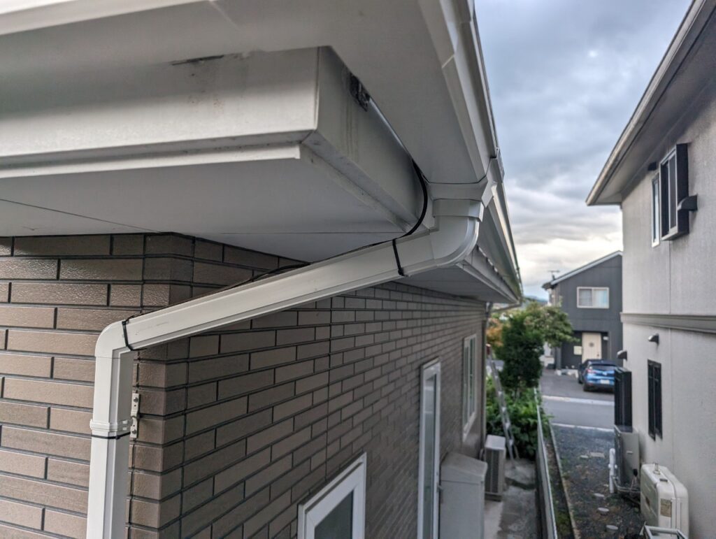 雨樋の交換が完了し、排水機能が正常に回復しました。雨水や雪解け水をスムーズに排出できる状態となり、外壁や基礎への水浸入リスクも解消されています。新しい雨樋と強化型金具により、今後の積雪シーズンにも安心して対応できる耐久性を確保。住宅全体の外観も整い、建物を長く守れる状態となりました。