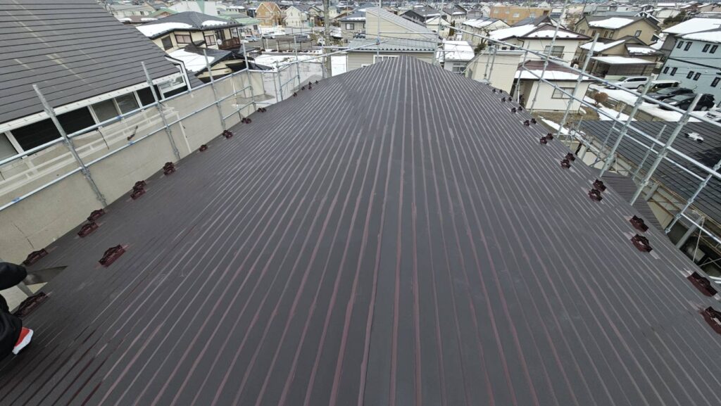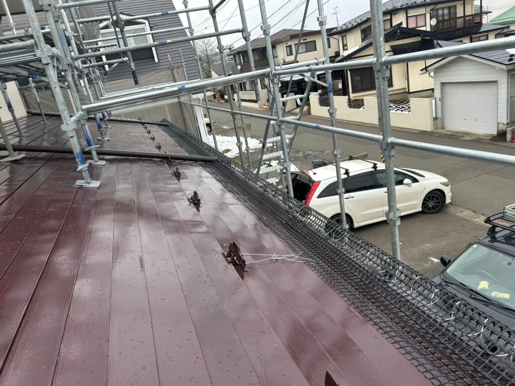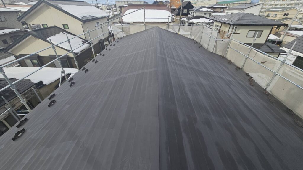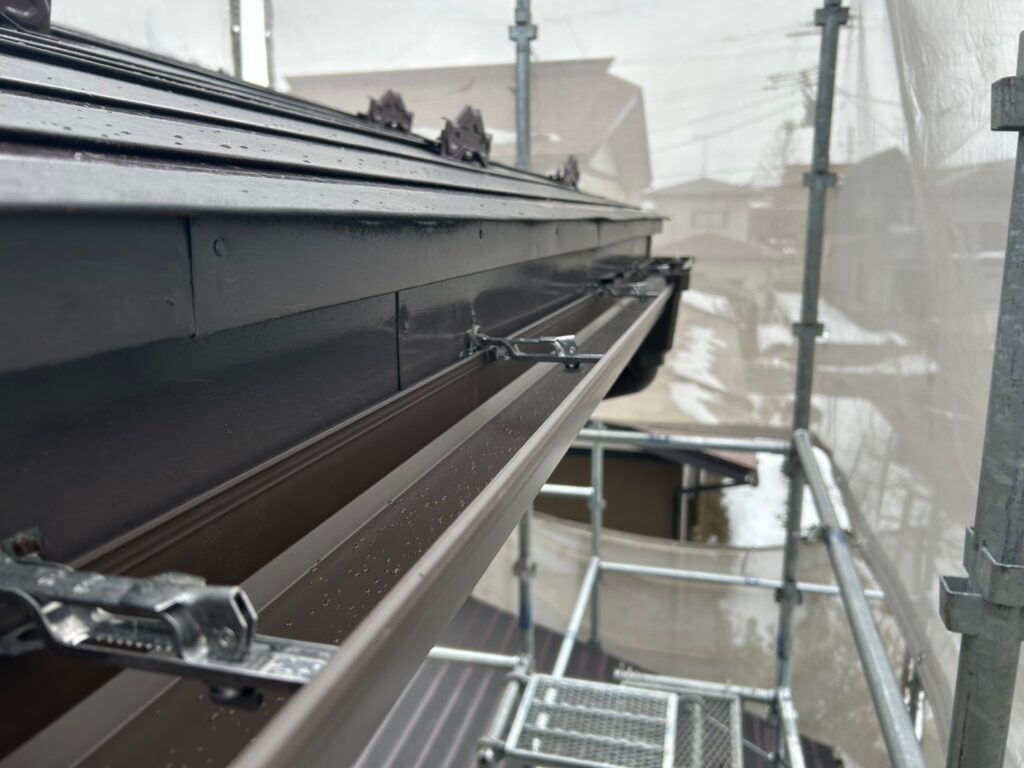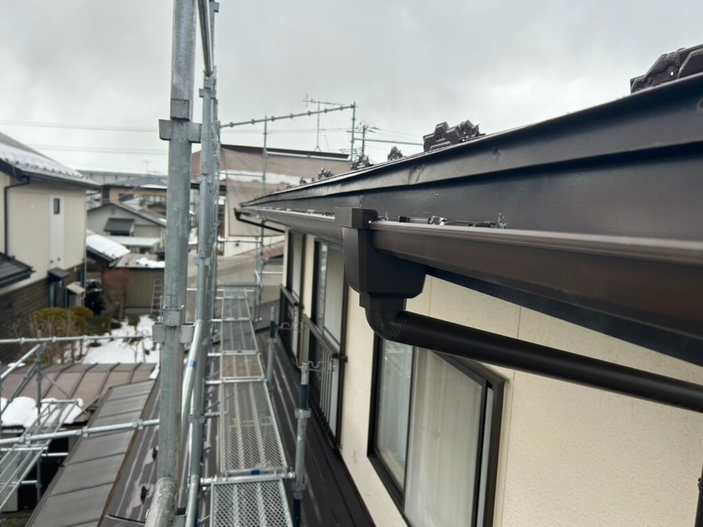 北上市T様邸では、スノーネット設置・屋根塗装・軒天補修・雨樋工事 を同時に実施し、住宅の安全性・耐久性・美観を大幅に改善しました。