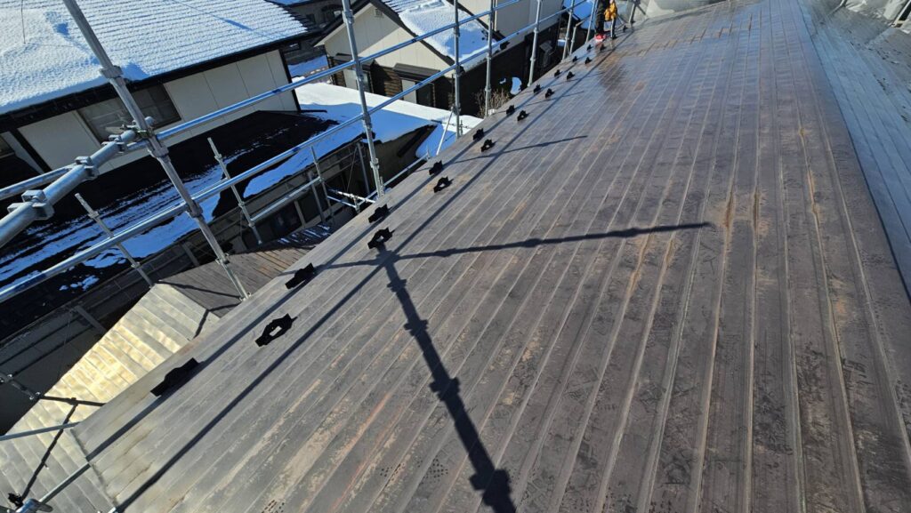 - 屋根全体に雪止め金具を取り付け、落雪を防止
