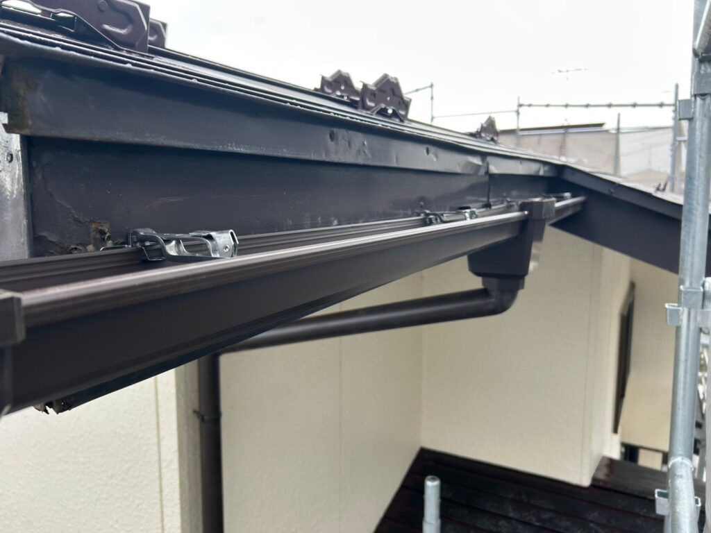 - 既存の歪んだ雨樋を撤去