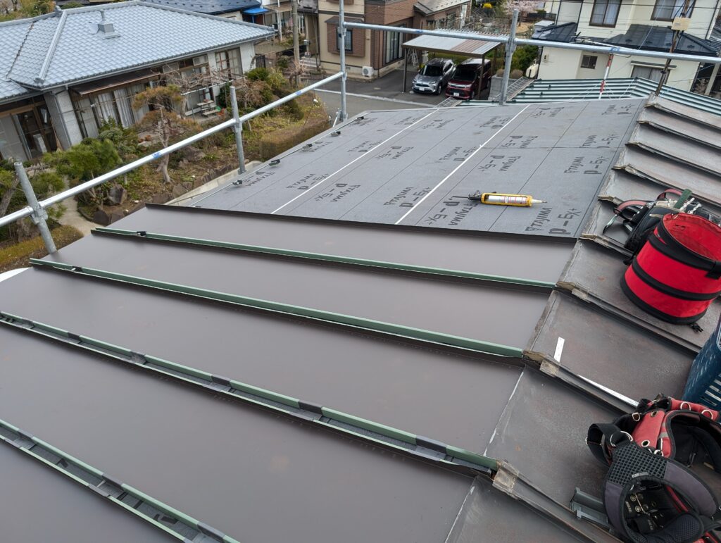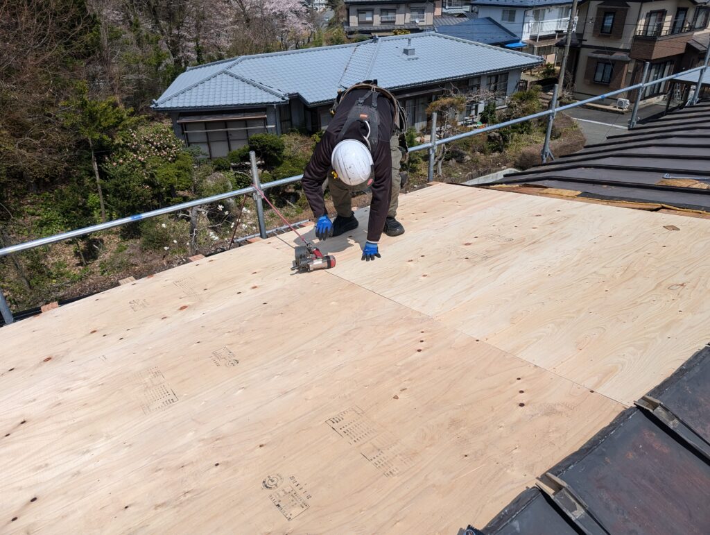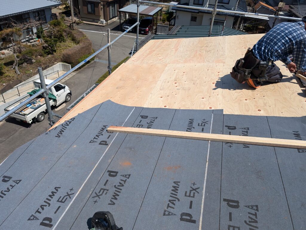 - 防水シート(ルーフィング)を敷設