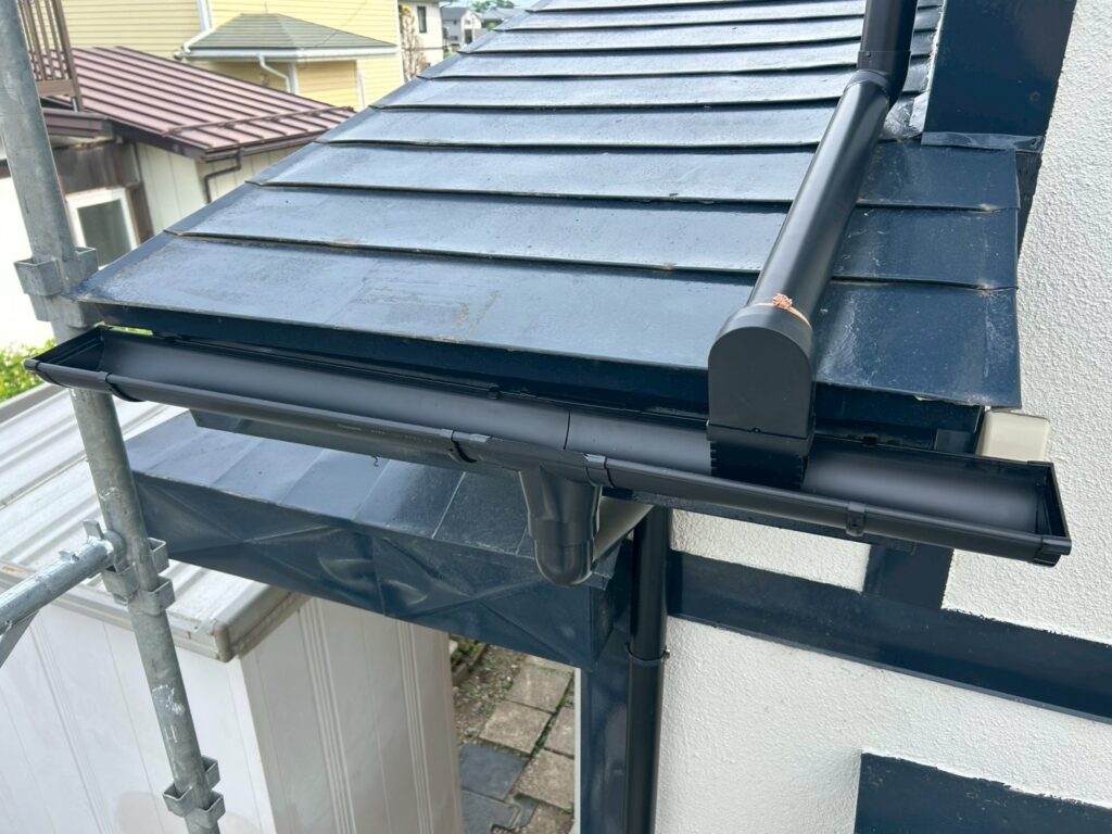 現地調査の結果をもとに、劣化している雨樋部材を交換し、勾配の調整と固定金具の補強を実施しました。盛岡市の積雪環境を考慮し、排水性と耐久性のバランスを重視した雨樋工事を行っています。