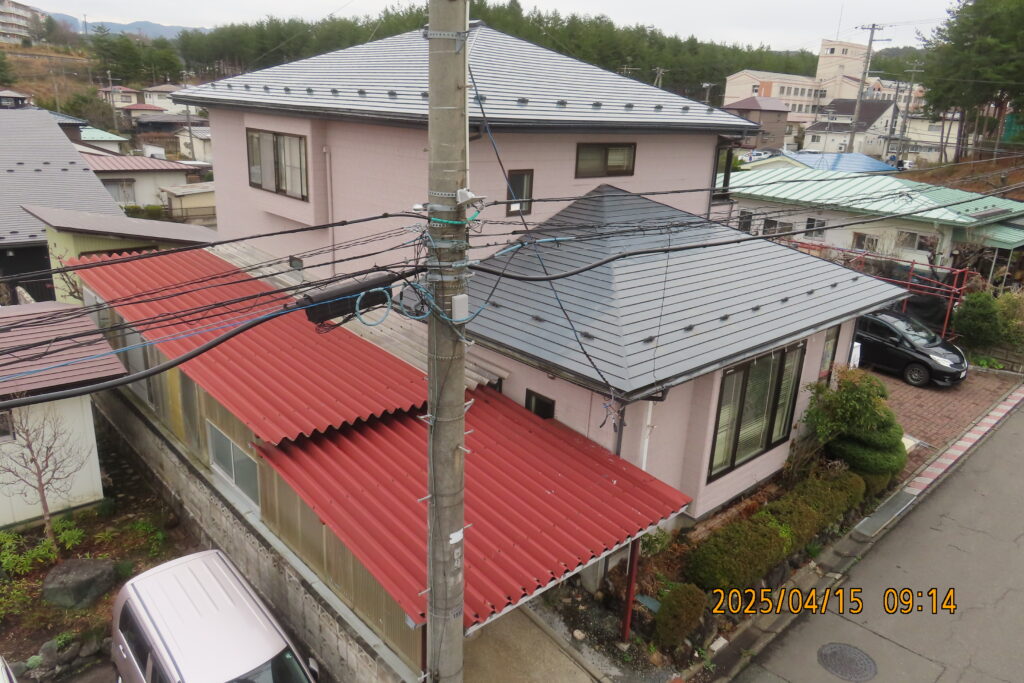 そんなC様のお悩みを解消するため、カーポートの折板屋根交換工事と雨樋の交換工事をセットで実施しました。なお、今回の被害は**火災保険(雪災)**が適用され、費用負担を大幅に軽減することができました。