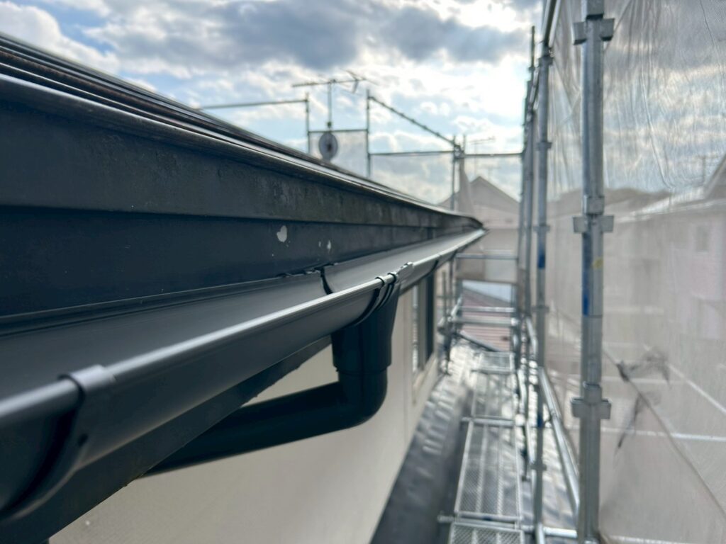 K様邸では、屋根塗装と雨樋全面交換をセットで実施しました。