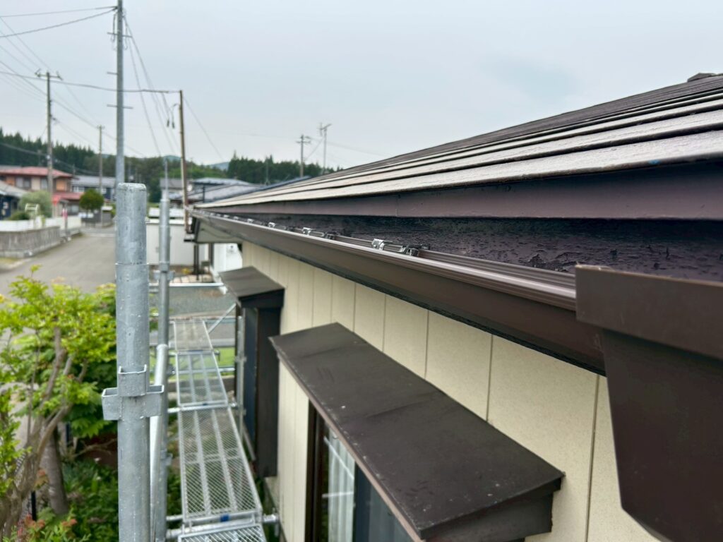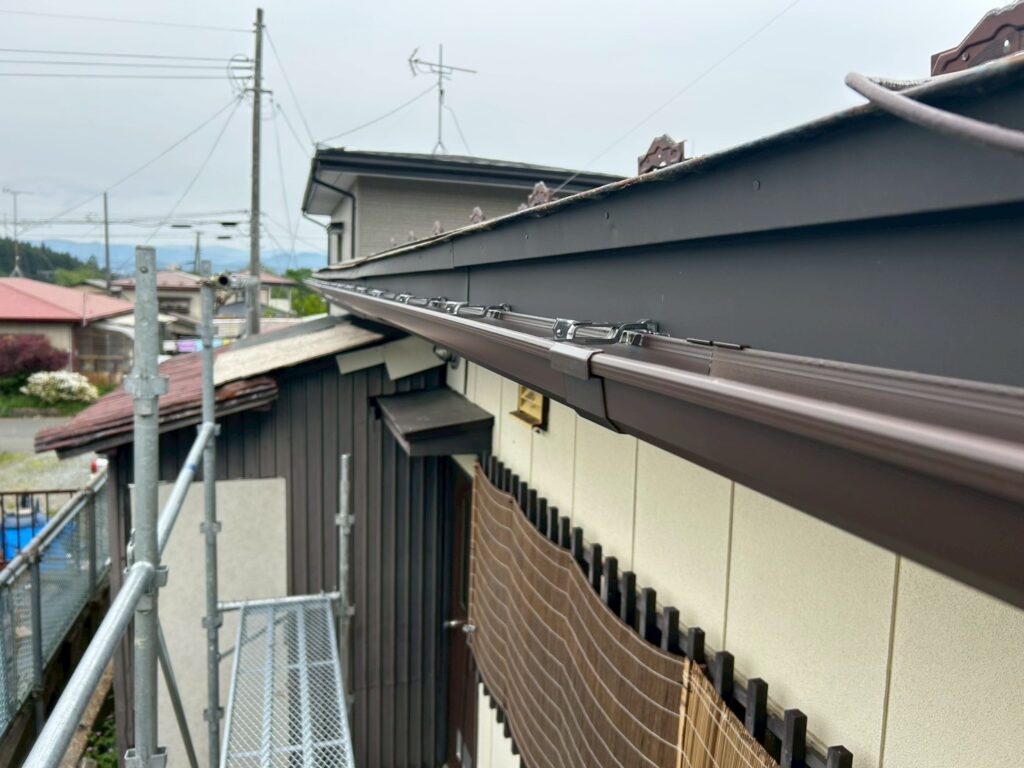 施工のポイント: 滝沢市は積雪量が多いため、金具の間隔を通常の60cmから45cmに詰めて設置。今後の積雪にも耐えられる仕様にしました。
