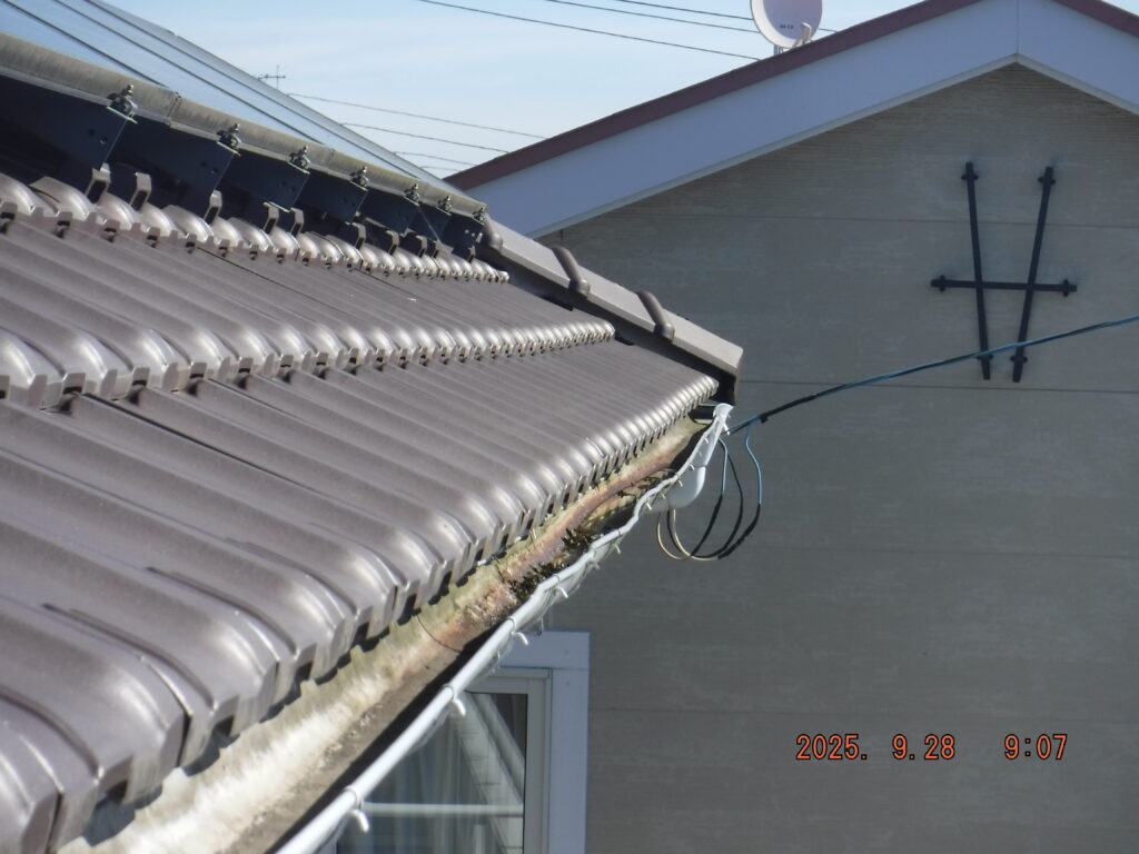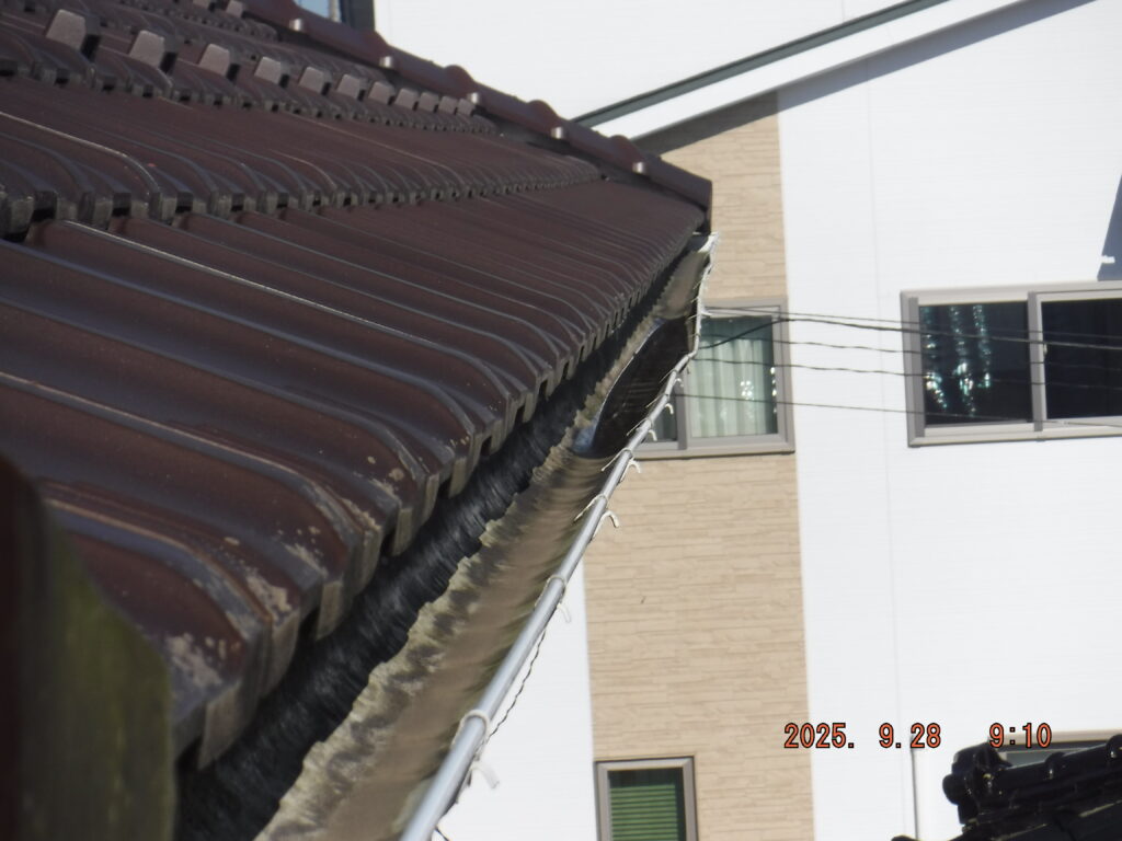 S様邸では雪止めが設置されておらず、毎年冬になると屋根からの落雪が雨樋を直撃。修理しても翌年また壊れるという悪循環が続いていました。