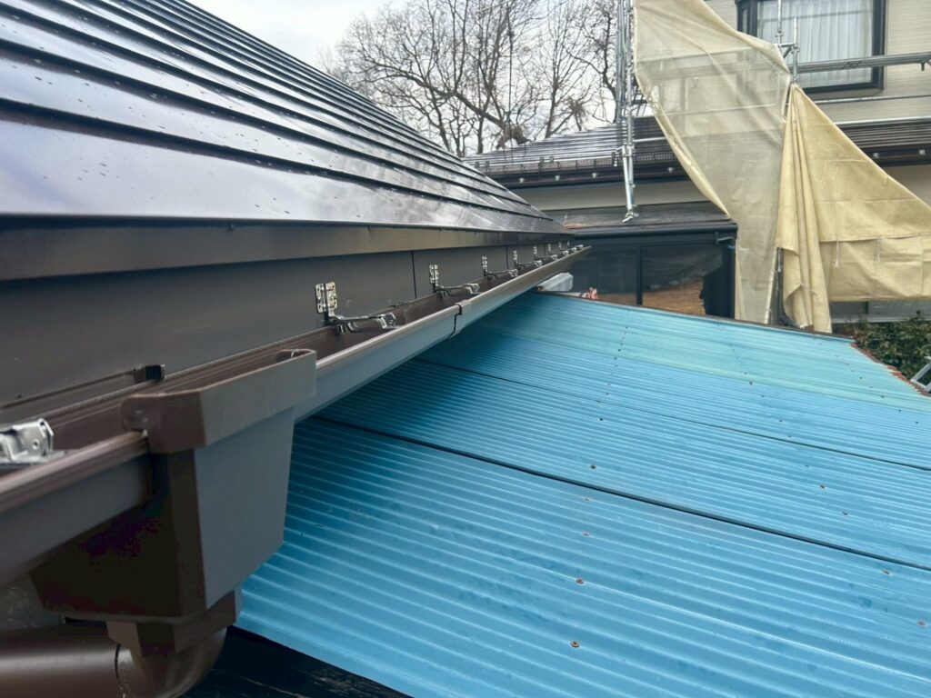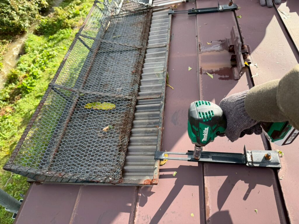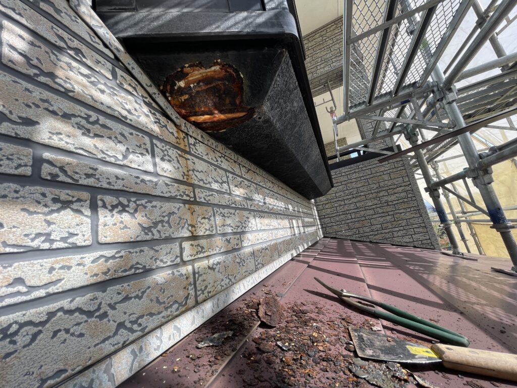 | 既存撤去 | 劣化した軒樋・縦樋・集水器・金具を撤去 |