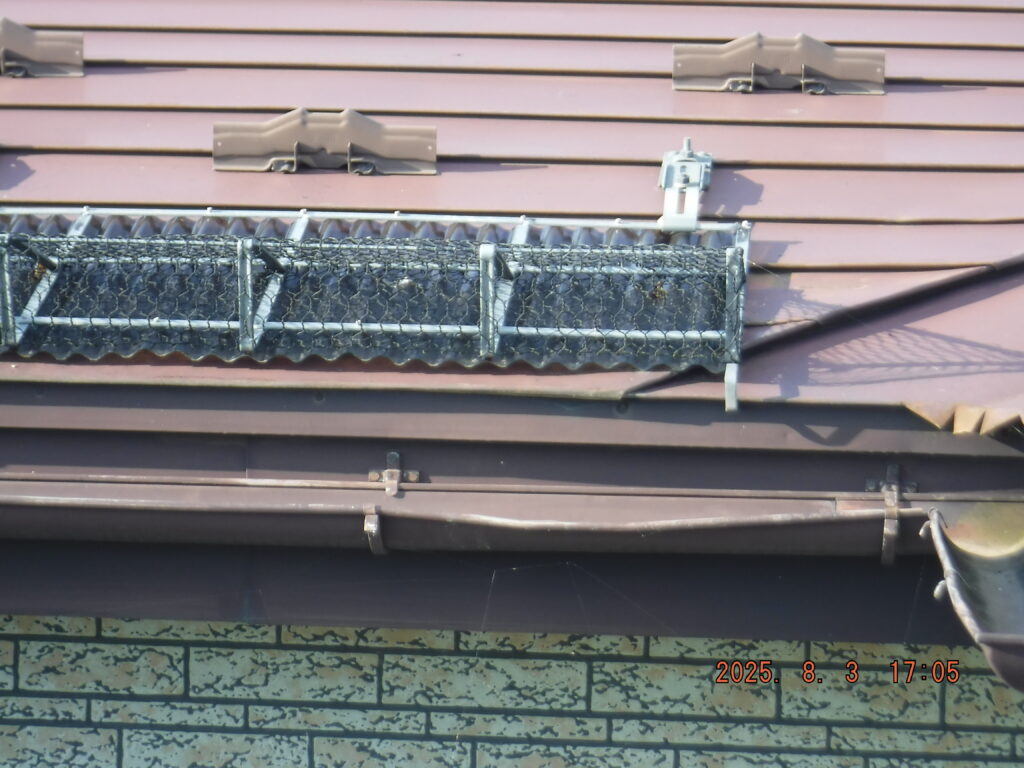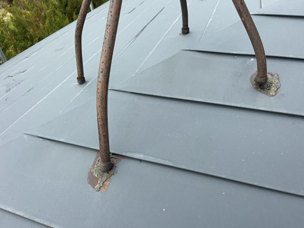 ③ 棟板金のシーリング劣化 棟板金周りのシーリングが硬化・収縮し、隙間が発生していました。