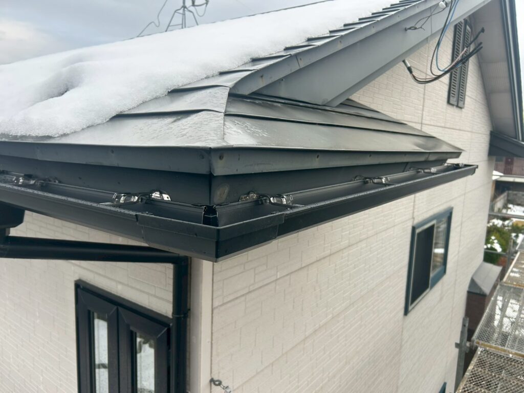 - 積雪荷重で雨樋が変形した