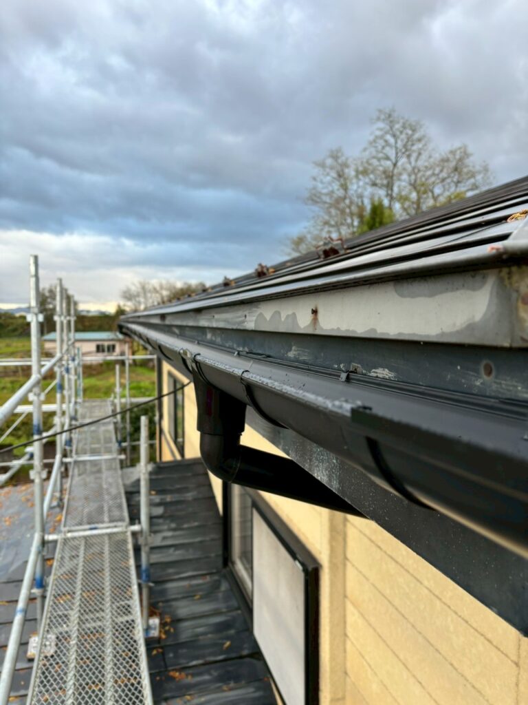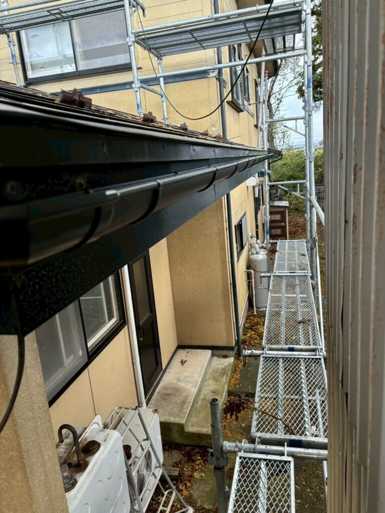 原因を特定し、雨樋の全面交換工事を実施しました。