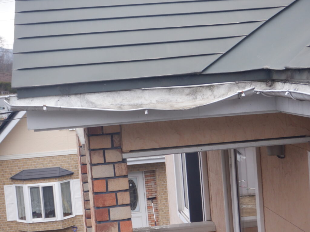- 雨樋が歪み、大雨や雪解け時に雨水があふれて外壁や基礎を濡らしていた