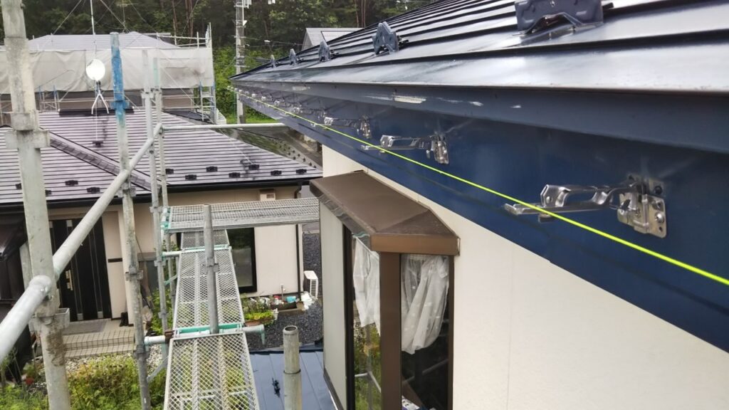 現地調査で雨樋と金具の状態を詳しく確認し、全体交換が必要と判断しました。まず傷んだ雨樋と固定金具をすべて撤去し、積雪対応の強化型金具を新たに取り付けました。その後、高耐久型の雨樋を適切な排水勾配を確保しながら設置。一関市の気候条件に対応できるよう、積雪荷重や凍結にも耐えられる仕様で施工を行っています。