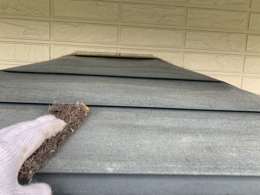 ① 屋根の塗膜が劣化し、防水性能が低下 長年の紫外線と雨風で、塗装がはがれかけていました。このまま放置すると屋根材に水が染み込み、雨漏りの原因に。