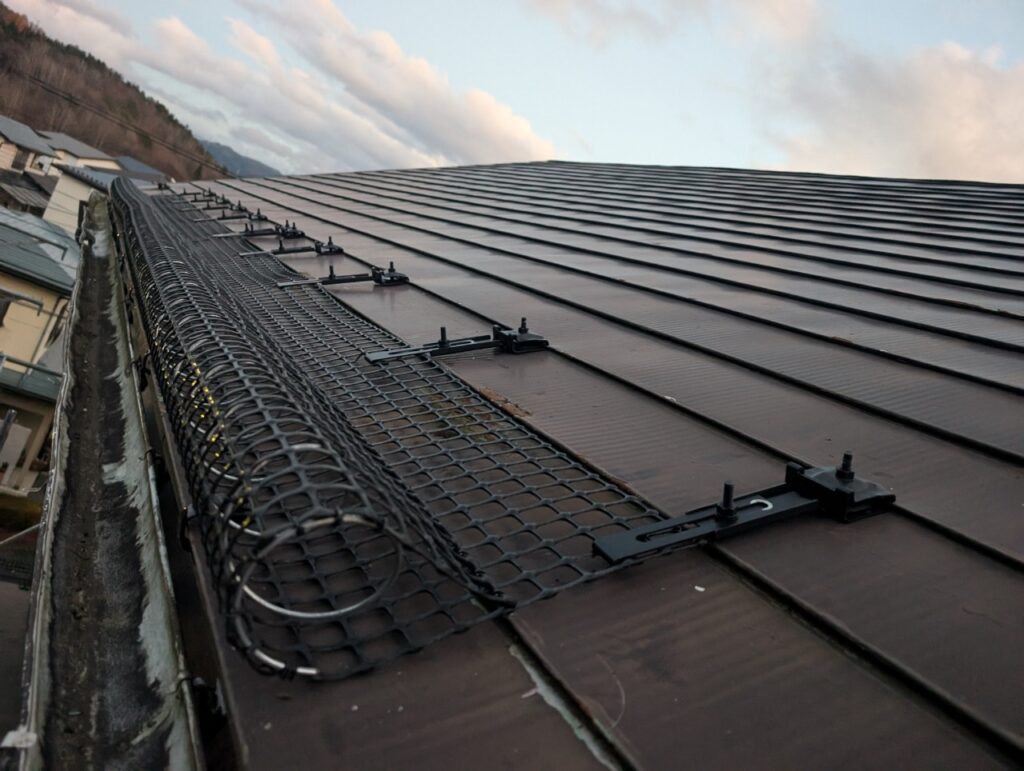 現地調査で屋根と雨樋の状態を詳しく確認し、それぞれの施工計画を立てました。雪止めネット設置工事では、屋根の形状や勾配に合わせて適切な位置にネットを設置。落雪を防ぎながら、雪解け水はスムーズに流れるよう配慮しました。雨樋工事では、既存の傷んだ雨樋と金具を丁寧に撤去し、積雪対応の強化型金具を新設。高耐久型の雨樋に交換し、適切な勾配を確保して排水機能を改善しました。