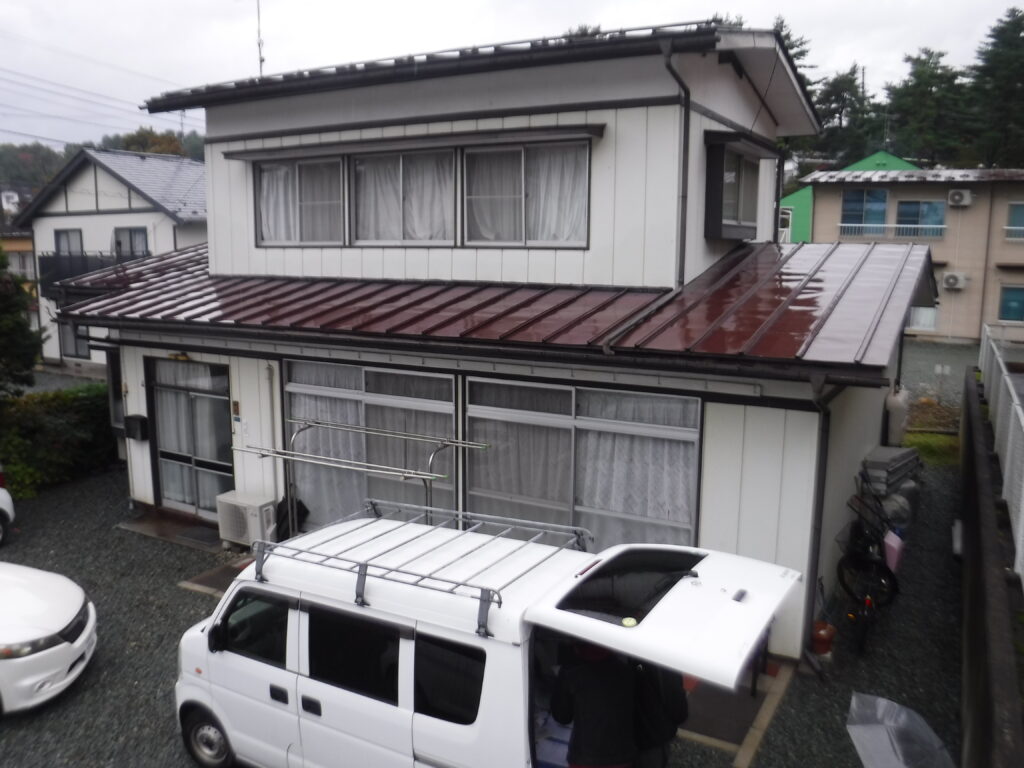 盛岡市H様邸では、軒天の経年劣化と雨樋の歪みが見られ、雨水の跳ね返りや外壁への影響が懸念されていました。特に盛岡エリアは積雪や凍結による負荷が大きく、軒天や雨樋の不具合を放置すると、内部腐食や雨漏りにつながる可能性があります。